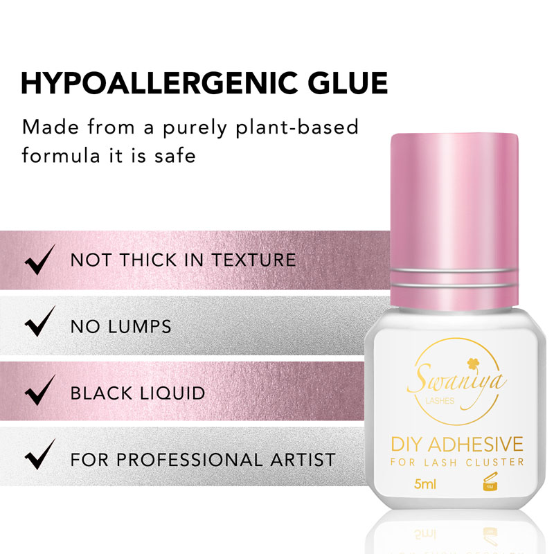 Predstavljate najnovejši izdelek Swaniya, lepilo za lash Swaniya DIY! To inovativno lepilo je odlična rešitev za tiste, ki imajo radi videz čudovitih, voluminoznih trepalnic, vendar ne želijo plačati za drage podaljške trepalnic. Z lepilom Swaniya DIY Lash Cluster lahko preprosto ustvarite svoje osupljive grozde za trepalnice iz udobja lastnega doma.